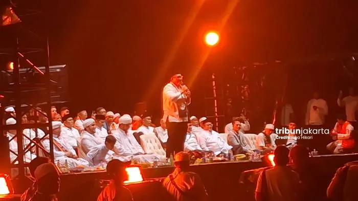 TRIBUNJAKARTA.COM, GAMBIR - Cocoklogi sekaligus harapan disampaikan Ketua Umum Jakmania, Diky Soemarno saat memberikan sambutan di acara tabligh akbar yang digelar di Monas, Jakarta Pusat, Jumat (19/12/2025).