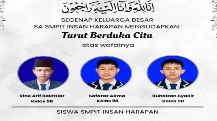 "Segenap Keluarga Besar SA SMPIT Insan Harapan Mengucapkan Turut Berduka Cita. Semoga Allah SWT Menerima Amal Ibadah-Nya, serta Menempatkan di Tempat Terbaik di Sisi-Nya. Amin Ya Rabbal 'Alamin," tulis unggahan dalam laman Instagram mereka yang dilihat TribunBatam.id, Senin (6/4/2026).