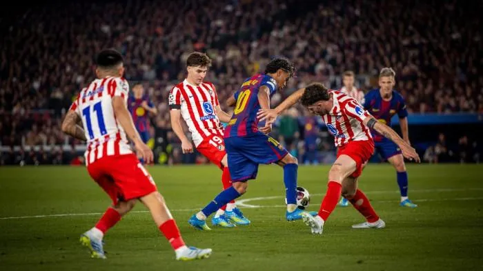 Belum genap satu menit, Barcelona langsung menyulitkan penjaga gawang Atletico Madrid, Musso. Tepatnya di detik 37, Barca melepaskan sepakan on target pertamanya melalui percobaan Lamine Yamal.