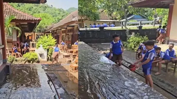 TRIBUN-BALI.COM, KARANGASEM - Hujan deras yang mengguyur Kecamatan Manggis, Karangasem, pada Kamis (11/12/2025) tidak hanya merendam pemukiman warga, tetapi juga melumpuhkan aktivitas belajar di SMPN 3 Manggis.