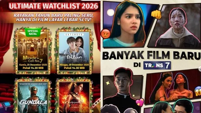 TRIBUNSUMSEL.COM - Sejumlah film akan ditayangkan di televisi menemani hari libur anda di rumah dalam rangka akhir tahun 2025.