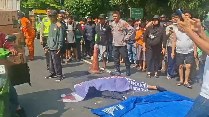 Namun, mereka bukan mengantre bantuan, melainkan menyaksikan seorang pengendara sepeda motor yang tewas terlindas truk di lokasi kejadian.